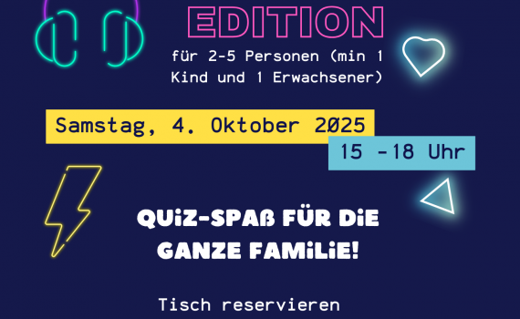 Das berühmte Kneipen-Quiz goes Family. Mit Fragen für Kinder und Erwachsene wird das Kneipen-Quiz zum Familien-Event. Reserviert mit eurer Familie einen Tisch.