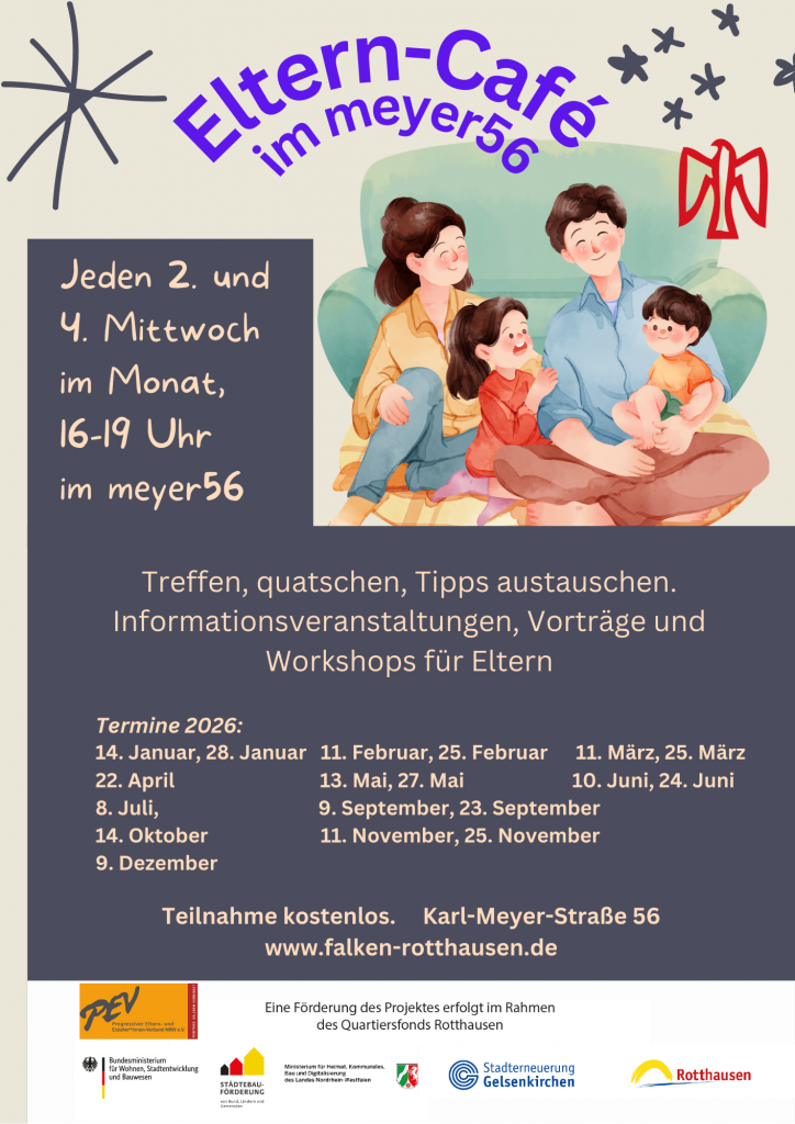 Ein wenig ist dran an diesem alten Spruch. Es gibt immer wieder neue Herausforderungen mit den Kids, egal ob Kleinkind oder wenn die Kids in Kita, Schule, Pubertät oder ins Erwachsenenleben starten. Beim Eltern-Café im meyer56 bieten wir von 16-19 Uhr die Möglichkeit zum Austausch und zu Info-Veranstaltungen und Vorträgen zu verschiedenen Themen. Die Teilnahme hier ist kostenlos. Nebenan kümmern wir Falken uns dann auch noch um die Kids.